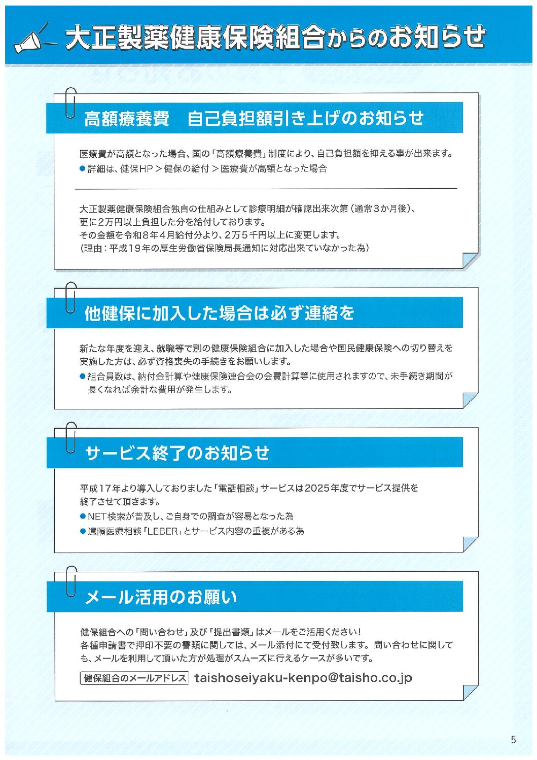 大正製薬健康保険組合からのお知らせ