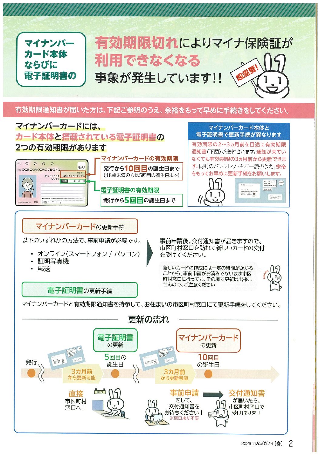 けんぽだより2026春号 マイナンバーカードの有効期限 マイナ保険証 電子証明書の有効期限