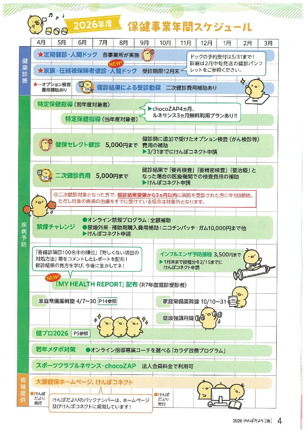 2026年度 保健事業年間スケジュール 2026年4月9日 カテゴリ: 健保 顧客名称: 大分銀行健康保険組合 編集担当: 藤井 タグ:けんぽだより2026春号 保健事業 保健事業年間予定 ← 過去の投稿へ 次の投稿へ →