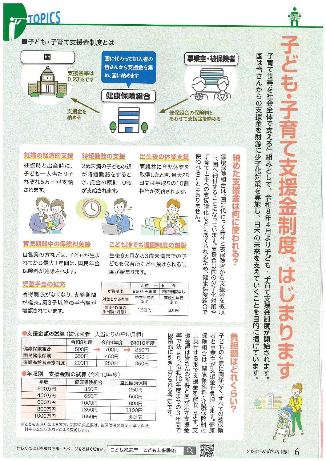子ども・子育て支援金制度、はじまります 2026年4月9日 カテゴリ: 健保 顧客名称: 大分銀行健康保険組合 編集担当: 藤井 タグ:けんぽだより2026春号 子ども・子育て支援金 ← 過去の投稿へ 次の投稿へ →