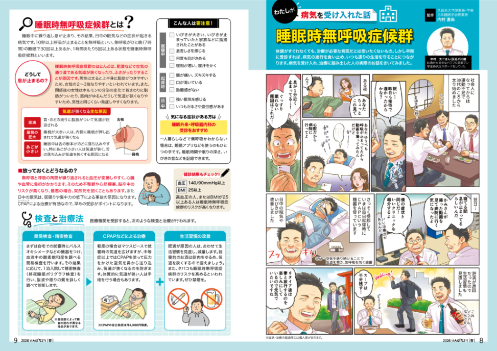 ○○けんぽだより けんぽだより2026春号 わたしが病気を受け入れた話 コミック 生活習慣病 睡眠 睡眠時無呼吸症候群 肥満 血圧