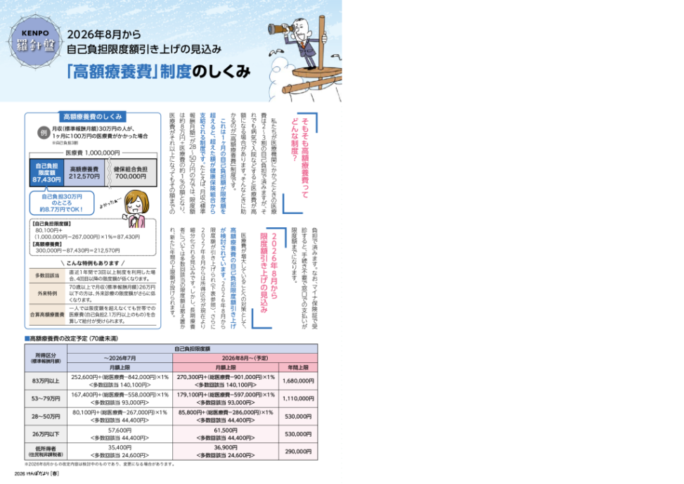 KENPO羅針盤 ○○けんぽだより けんぽだより2026春号 制度説明 医療費 高額療養費