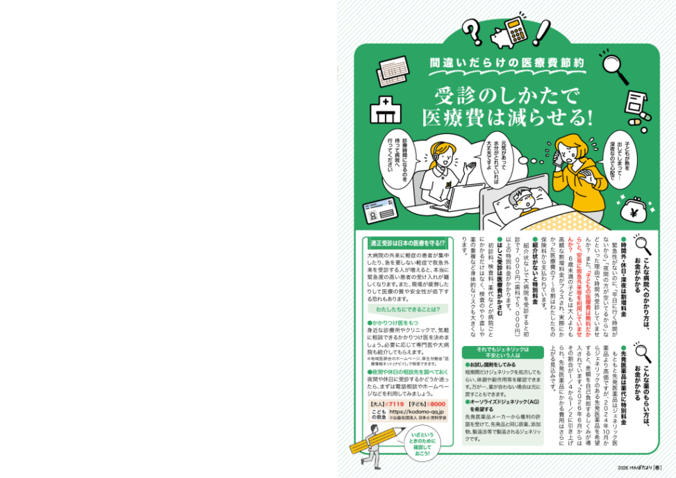 【汎用版】間違いだらけの医療費節約:受診のしかたで医療費は減らせる! 2026年3月1日 カテゴリ: 健保 タグ:○○けんぽだより けんぽだより2026春号 ジェネリック医薬品 健康保険 制度説明 医療費適正化 適正受診 間違いだらけの医療費節約 ← 過去の投稿へ 次の投稿へ →