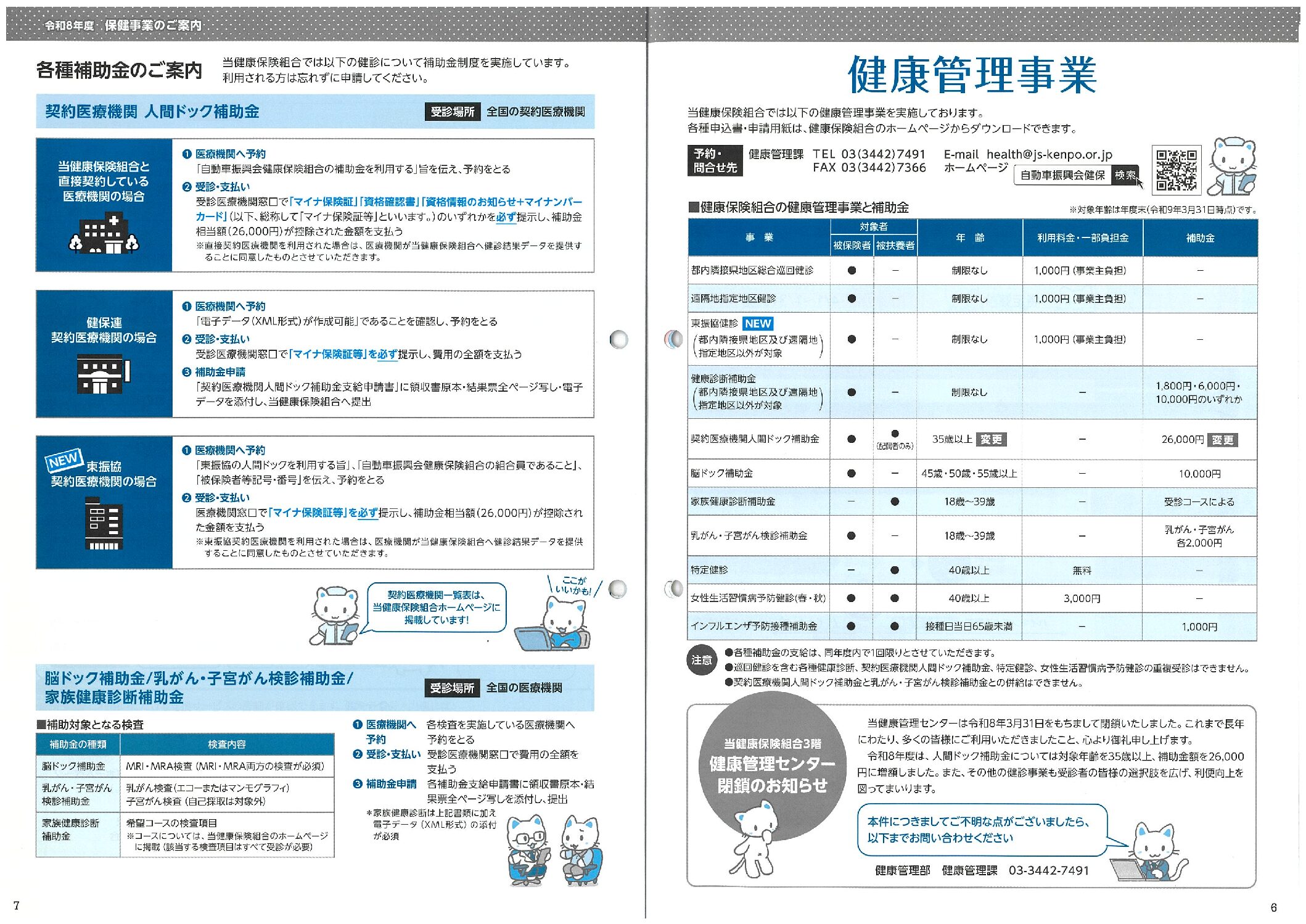 けんぽだより2026春号 乳がん・子宮がん検診補助金 人間ドック補助金 健康管理事業 家族健康診断補助金 脳ドック補助金 補助金