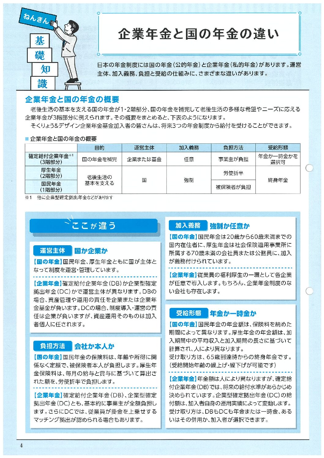 【ねんきん基礎知識】企業年金と国の年金の違い 2026年4月21日 カテゴリ: 年金 顧客名称: そくりょう&デザイン企業年金基金 編集担当: 谷中 タグ:企業年金 公的年金 厚生年金 国民年金 基金だより2026春号 年金の概要 私的年金 ← 過去の投稿へ 次の投稿へ →