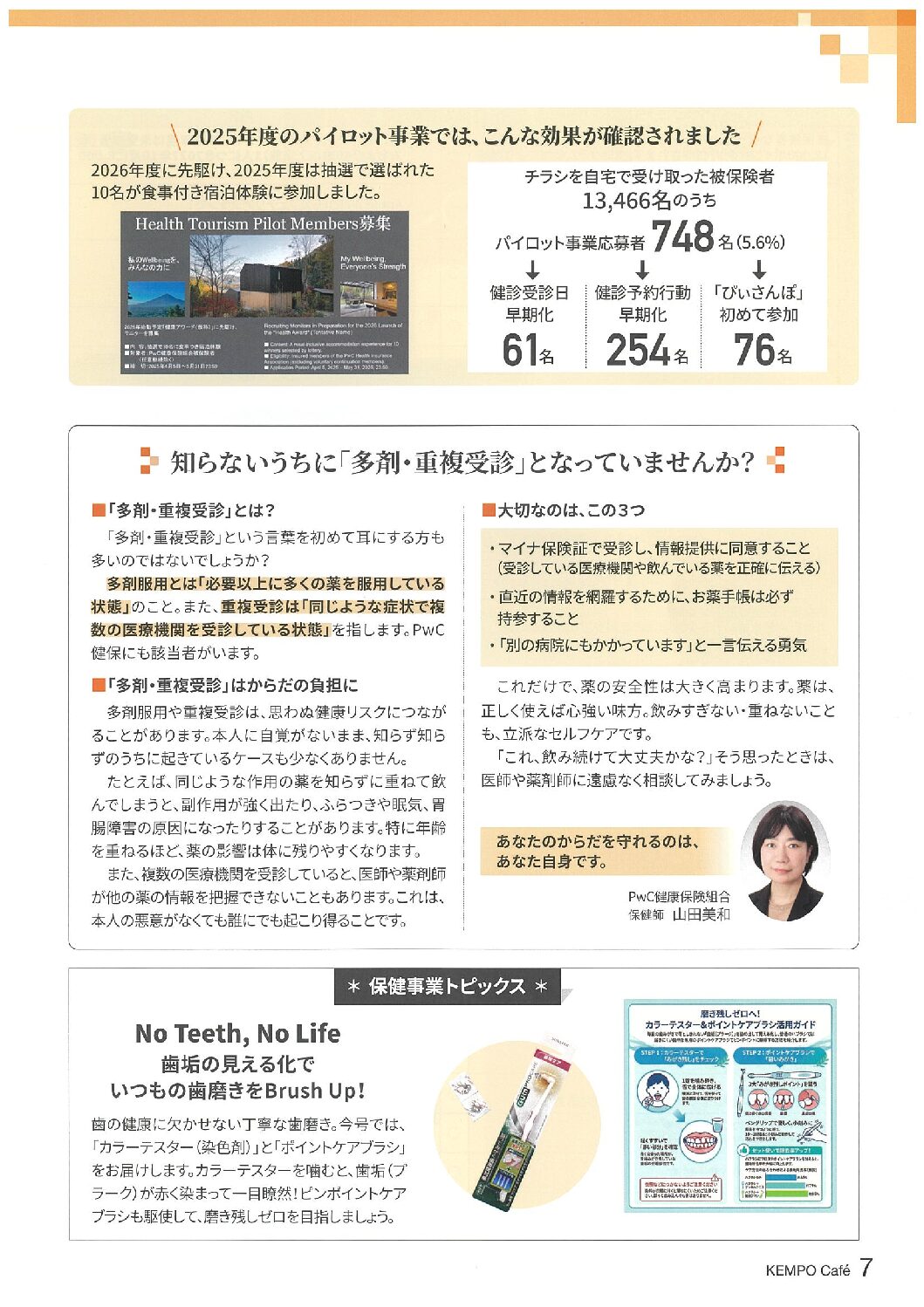 知らないうちに「多剤・重複受診」となっていませんか?・保健事業トピックス 歯垢の見える化でいつもの歯磨きをBrush Up!