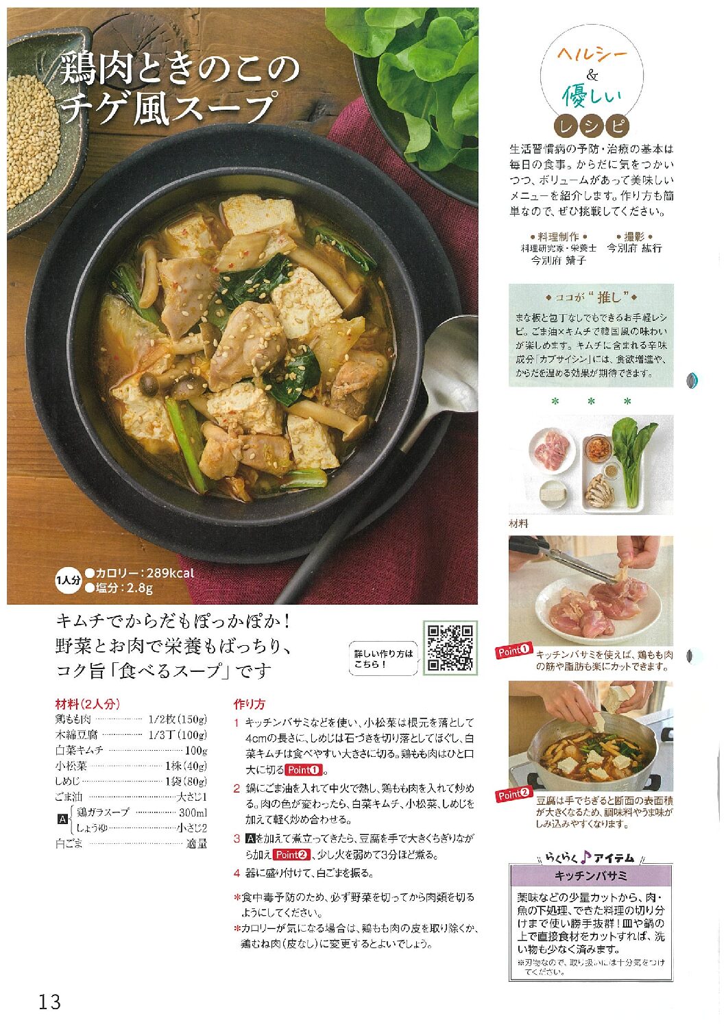 ヘルシー&優しいレシピ 鶏肉ときのこのチゲ風スープ