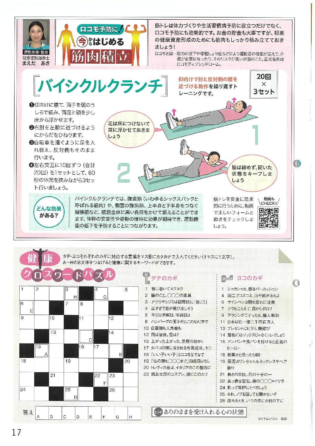 ロコモ予防に!今からはじめる筋肉積立「バイシクルクランチ」・健康クロスワードパズル